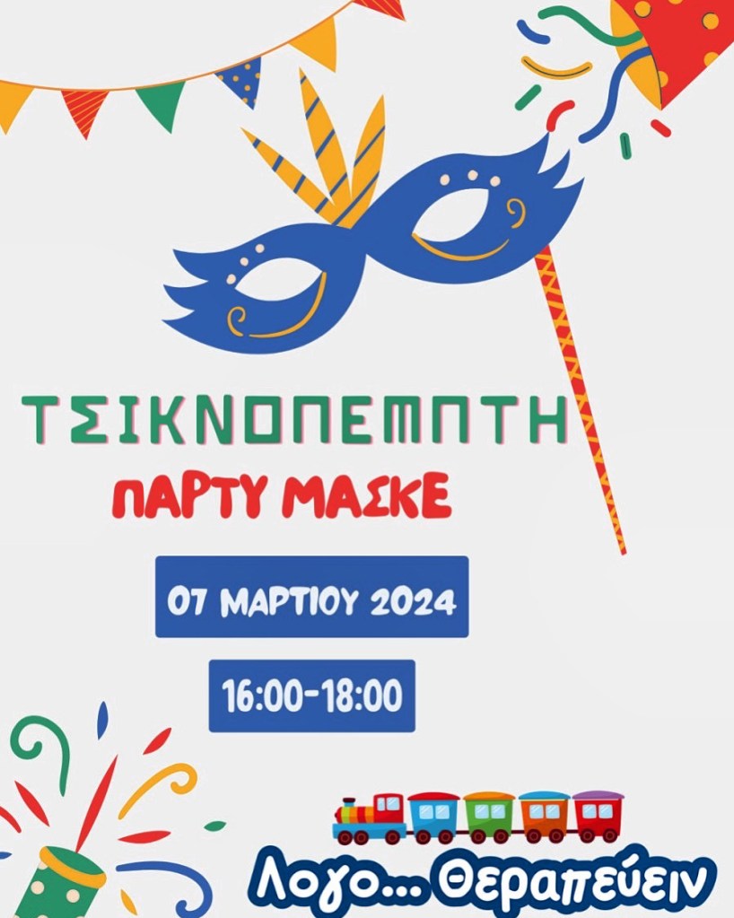 ΤΣΙΚΝΟΠΕΜΠΤΗ – ΜΑΣΚΕ ΠΑΡΤΥ 6 Μαρτίου 2024 από logotherapevein Κοινοποίηση: Mοιραστείτε στο Facebook(Ανοίγει σε νέο παράθυρο) Facebook Μοιραστείτε στο X(Ανοίγει σε νέο παράθυρο) Χ Μοιραστείτε στο LinkedIn(Ανοίγει σε νέο παράθυρο) LinkedIn Μοιράσου στο WhatsApp(Ανοίγει σε νέο παράθυρο) WhatsApp Στείλε ένα σύνδεσμο σε έναν φίλο(Ανοίγει σε νέο παράθυρο) Email Μου αρέσει! Φόρτωση... Σχετικά Δημοσιεύθηκε από logotherapevein Δείτε όλα τα άρθρα του/της logotherapevein