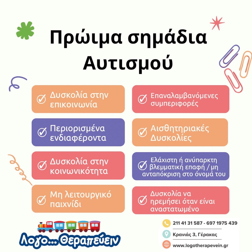 αυτισμός #πρώιμασημάδια #πρώιμηπαρέμβαση #λογοθεραπεία #αξιολόγηση #λογοθεραπεία #εργοθεραπεία #ψυχοπαιδαγωγικό #ομάδεςκοινωνικώνδεξιοτήτων #λογοθεραπεύριν #λογοθεραπεύειν_Γέρακας #Γέρακας #ASD #earlyintervention